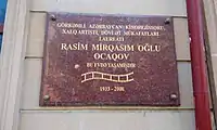 ![]() La placa conmemorativa de Rasim Ojagov en Bakú | ||