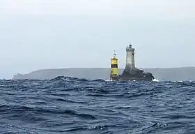 ![]() El raz de Sein a la altura del faro de la Vieille y de la tourelle de la Plate, mirando hacia el continente. | ||