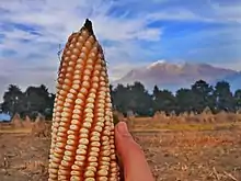 El maíz es un cultivo ligado a la historia de México y es la planta de mayor importancia para el país, pues es la base de la alimentación de sus habitantes y también parte de la cultura desde etapas previas a la conquista. El maíz fue domesticado por los pobladores del territorio por un periodo prolongado, y como lo señalan las historias prehispánicas, como el Popol Vuh: "el hombre en estas tierras está hecho de maíz".[2]