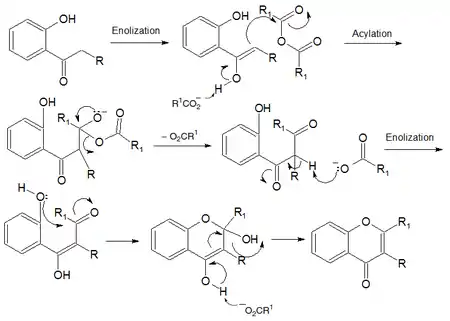 La reacción de Allan-Robinson es una reacción orgánica que consiste en tratar o-hidroxiaril cetonas con anhídridos aromáticos para formar flavonas (o isoflavonas).[1][2][3]