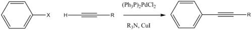 En química orgánica y organometálica, la reacción de Sonogashira es el acoplamiento de acetilenos terminales (aquellos que tienen al menos un H) con haluros de arilo o vinilo. La reacción fue publicada por primera vez por Kenkichi Sonogashira y Nobue Hagihara en 1975.[1]