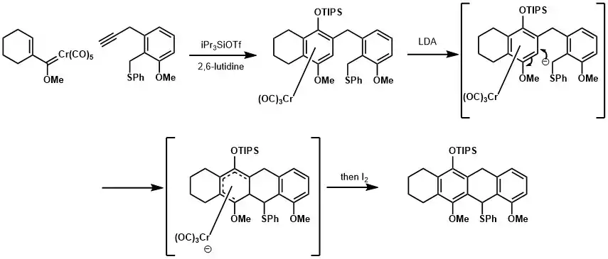 - Chamberlin, Steven; Wulff, William D. (December 1992). «Sequential benzannulation/nucleophilic aromatic addition reactions mediated by chromium(0)». Journal of the American Chemical Society 114 (26): 10667-10669. doi:10.1021/ja00052a090.