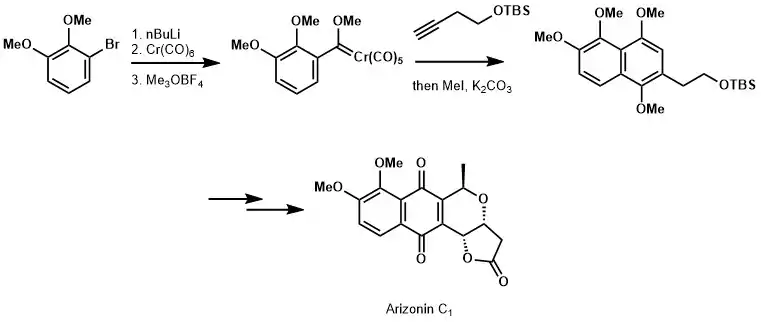 La reacción de Wuff-Dötz ha sido empleada en la síntesis de productos naturales:[15][16]