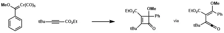 - Wulff, William D.; Kaesler, Ralph W. (August 1985). «Cyclobutanone formation via in situ generated vinyl ketene complexes of chromium». Organometallics 4 (8): 1461-1463. doi:10.1021/om00127a028.