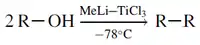 Los alcoholes alílicos o bencílicos pueden ser simétricamente acoplados por tratamiento con metil litio y cloruro de titanio (III) a -78 °C o con cloruro de titanio (III) e hidruro de litio y aluminio. Si el sustrato es un alcohol alílico, la reacción no es regioespecífica. Los 1,3-dioles se pueden convertir en ciclopropanos por esta reacción[39][40][41]