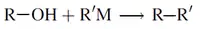 En algunos casos es posible acoplar un alcohol con un compuesto organometálico. Los alcoholes alílicos se acoplan con bromuros de alquilmagnesio en la presencia de tetraisopropóxido de titanio (M = Ti)[36] Los alcoholes alílicos también se pueden acoplar con ácidos arilborónicos solvente iónico líquido y un catalizador de rodio.[37] El acoplamiento de un alcohol al carbono α de una alquilmetilcetona da un alcohol β-sustituido.[38]
