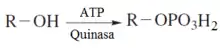 Biológicamente, las quinasas (EC 2.7.1.-) son enzimas que transfieren grupos fosfato a grupos alcohol: