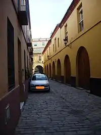 Interior de la Casa de la Moneda. Pueden notarse los arcos y las calles empedradas.