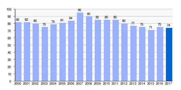 Gráfica de evolución demográfica de Real Valle de Laminoria[2] entre 2000 y 2017 |