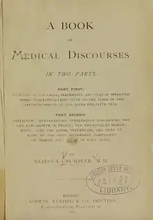 Rebecca Davis Lee Crumpler (Christiana, Delaware; 8 de febrero de 1831-9 de marzo de 1895) fue la primera médica afroestadounidense.[nota 1] Se casó con Arthur Crumpler quien había servido con el Ejército de la Unión durante la Guerra de Secesión. Su publicación de A Book of Medical Discourses en 1883 fue uno de los primeros escritos sobre medicina realizado por un afroamericano.[1]