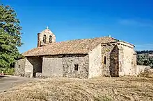 - En ruinas. De mampostería, con elementos de sillería. Materiales: caliza gris y blanca, arenisca y toba. Ábside semicircular. Una nave. Portada. Quedan la jamba oriental y las dos primeras dovelas de un arco de medio punto. Saetera. Tuvo un techado a dos aguas, del que queda una parte en la cabecera. Ventanal en el muro sur. Portada occidental de 1664, con arco de medio punto, grandes dovelas e impostas barrocas.[4][5]