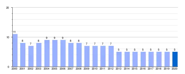 Gráfica de evolución demográfica de Rebolledo de la Inera entre 2000 y 2020 |