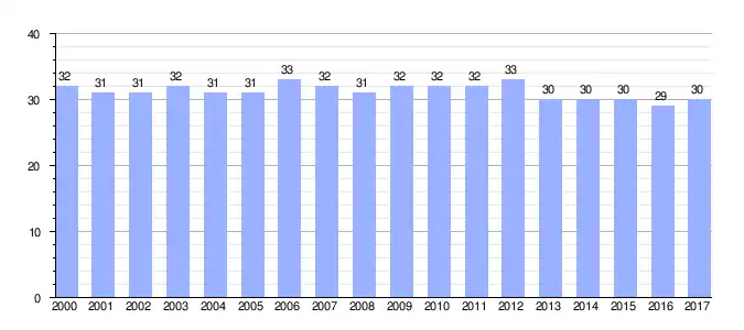 Población de derecho (2000-2017) según los censos de población del INE a 1 de enero de cada año.[7] |