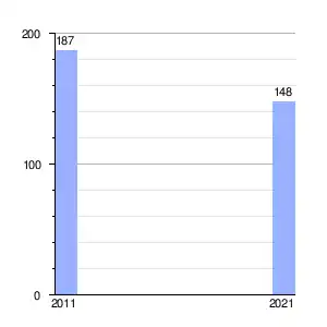 Gráfica de evolución demográfica de Rebordainhos e Pombares entre 2011 y 2021 |