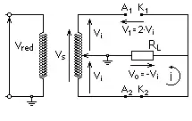 - Vo (tensión continua de salida) = Vi ( tensión alterna de entrada) = Vs/2 en el rectificador con diodos.
