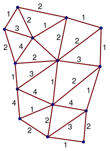 Por ejemplo, a = 3, b = 4, c = 6 es imposible ya que 3 + 4 + 6 = 13 es impar, y a = 3, b = 4, c = 9 es imposible ya que 9 > 3 + 4. Sin embargo, a = 3, b = 4, c = 5 es posible ya que 3 + 4 + 5 = 12 es par, y la desigualdad del triángulo se cumple. Algunas convenciones utilizan etiquetados por medios enteros, con la condición de que la suma a + b + c debe ser un número entero.