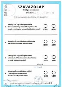 El referéndum de Hungría de 2022 se llevó a cabo el 3 de abril, junto con las elecciones parlamentarias. Dicho referéndum constó de cuatro preguntas sobre la enseñanza de contenidos LGBT en el ámbito educacional.[1]