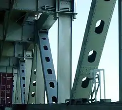 Muchos puentes cortos están anclados estáticamente en un extremo y a fuelles (en inglés, rockers) en el otro. Esta estructura corrediza le da al puente soporte vertical y transversal mientras permite al tramo del puente de expandirse y de contraerse con los cambios de temperatura. El cambio en la longitud del tramo se acomoda sobre un espacio que es dejado en la parte no sobre-elevada de la vía por juntas de expansión. Durante amplios movimientos del terreno, los rockers pueden saltar de sus carriles o ser movidos más allá de sus límites de diseño, causando que el puente se desplaze de su posición de reposo para después terminar no alineado o hasta derrumbarse completamente. El movimiento puede ser restringido añadiendo unos ganchos en acero dúctil o de alta resistencia, que están ligados a cilindros de metal corredizos coaxialmente, con un movimiento condicionado por la fricción, proyectados para deslizarse lentamente (y con producción de calor) bajo estrés extremados mientras todavía logran limitar el movimiento relativo respecto a su anclado.
