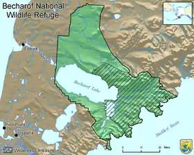 ![]() ![]() Refugio nacional de vida silvestre de Becharof Ubicación en Alaska. | ||