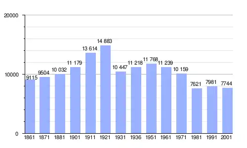 Gráfica de evolución demográfica de Regalbuto entre 1861 y 2001 |