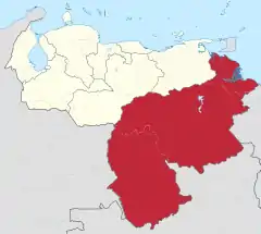 Norte: Región Nor-Oriental, Océano Atlántico Sur: Brasil Occidente: Colombia, Región de los Llanos Oriente: Guayana Esequiba | |