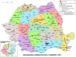 En 1950, Rumanía adoptó el modelo soviético de división administrativa y territorial del país en regiones y raiones (hasta entonces, Rumania había estado dividida en judeţe o condados).