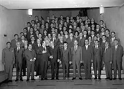 Nicolae Ceauşescu y la delegación de la Región Autónoma Mureş-Magyar en el IX Congreso del Partido Comunista Rumano en julio de 1965.