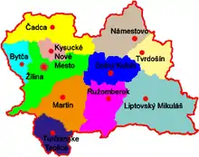 La región de Žilina se subdivide en 11 distritos (en eslovaco okresy):