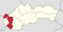 Limita al sur con Hungría, al oeste con Austria y la región de Bratislava, al norte con la República Checa y al este con la región de Nitra y la región de Trenčín.