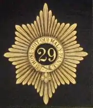 La insignia de regimiento del 29º y más tarde del Regimiento Worcestershire, muestra la influencia de la Guardia Coldstream en el regimiento. La Guardia Coldstream y el 29º Regimiento de a pie, son los dos únicos regimientos que poseen la estrella alargada y la liga de la Orden de la Jarretera como insignia del regimiento con su lema «Honi Soit Qui Mal Y Pense» («Que se avergüence el que mal haya pensado»), obteniendo su tercer apodo: «Guards of the line».