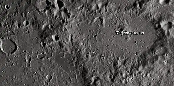Por convención estos elementos son identificados en los mapas lunares poniendo la letra en el lado del punto medio del cráter que está más cercano a Regiomontanus.