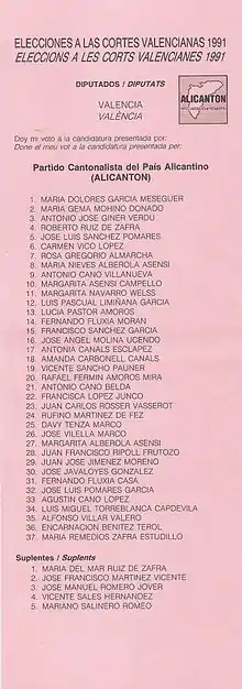 - 1991: 4.119 votos (ALICANTON),[10] Elecciones a las Cortes Valencianas.