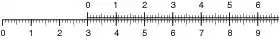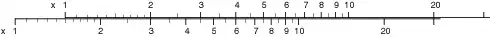 duplicado de la escala básica; escala logarítmica de una decena, situada en el borde inferior de la regleta móvil | ||