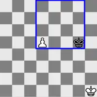 En la posición del diagrama 8 las blancas parecen perdidas ya que el rey negro están dentro del cuadrado del peón blanco y el rey blanco está fuera del cuadrado del peón negro, pero por la peculiar geometría del tablero de ajedrez lo cierto es que nos podemos acercar a los dos peones a la vez, si vamos por la diagonal.
