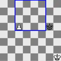 Es decir, el cuadrado está formado por un cuadrado de lado igual al número de filas que le falta al peón para coronar, incluida la fila en la que está el peón. Si el rey enemigo está dentro de ese cuadrado llega a capturar al peón, si está fuera no.