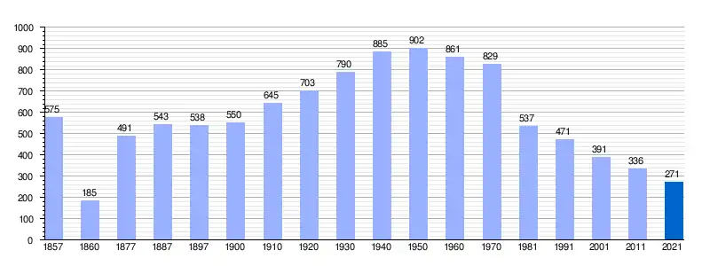Población de derecho (1842-1991, excepto 1857 y 1860 que es población de hecho) o población residente (2001-2011) según los Censos de Población desde 1842. Población según el padrón municipal de 2021 del INE. |