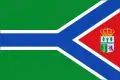La bandera municipal tiene forma rectangular de proporciones 2:3 de color verde el paño y dividido al medio por franja azul flanqueada de blanco y bifurcada en dos franjas de igual color desde el centro a los vértices del batiente, con un triángulo rojo al batiente encastrado del escudo municipal.[7]