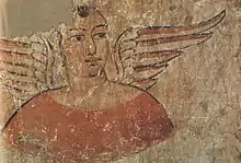 - Jones, Robert A. (2009). «Centaurs on the Silk Road: Recent Discoveries of Hellenistic Textiles in Western China» (PDF). edspace.american.edu (en inglés). p. 27. Consultado el 2 de abril de 2020. «Woolen textile fragment depicting Hermes, found by Stein in a grave pit at Loulan. »
