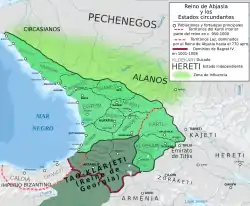 El periodo más próspero del reino de Abjasia fue entre 850 y 950. A principios del siglo X, se extendía, de acuerdo con las fuentes bizantinas, a lo largo de 300 millas griegas en la costa del mar Negro, desde la frontera del thema de Caldia hasta la desembocadura del río Nicopsis, con el Cáucaso a su espalda. El incremento de las tendencias expansionistas del reino lo llevó a un crecimiento del mismo en dirección este. Empezando por Jorge I (872/73-878/79), los reyes abjasos controlaron también Kartli (Georgia central y parte de la oriental), interfiriendo en los asuntos de los Bagrátidas georgianos y armenios. Sobre el 908, el rey Constantino III (898/99-916/17) había anexado finalmente una significativa parte de Kartli, llevando a su reino a limitar con el área controlada por los árabes de Tiflis. Bajo su hijo, Jorge II (916/17-960), el reino de Abjasia alcanzó su cima de poder y prestigio. Por un breve período, Kajeti en la Georgia oriental y Hereti en los límites de Albania caucásica y Georgia, se reconocieron feudatarias de Abjasia. Como aliado temporal del Imperio Bizantino, Jorge II patrocinó las actividades misioneras de Nicolás Mistikos entre los Alanos.