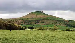 - North York Moors.- Los Moors son una de las mayores extensiones de parameras de brezo en Gran Bretaña. El páramo constituye la superficie de un relieve tabular y se asienta sobre suelos calizos, con una escasa vegetación, basada generalmente en el brezo y el matorral. La ausencia de masa forestal produce una fuerte amplitud térmica, vientos constantes y una hidrografía escasa, ya que el agua se filtra por la porosa roca calcárea drenando la superficie del páramo y formando cañones por donde discurren los ríos, también debido a su altitud suelen ser frecuentes las nieblas en épocas lluviosas. Esta condiciones inhóspitas hicieron que los asentamientos anglosajones en esta zona fueran escasos, solamente en los cursos de los ríos, el Esk al norte y el Rye y sus tributarios al sur. Aunque no son montes muy altos (alrededor de 400 m), son escarpados y prominentes sobre el zócalo donde se asientan. Las mayores alturas son Urra Moor (454 m.), Cringle Moor (432 m.) y Danby High Moor(432 m.), el perfil característico del Roseberry Topping (320m) le hizo objeto de culto pagano de anglos y vikingos, siendo considerado morada de Woden, y su propio nombre deriva del nórdico Óðins bjarg (la roca de Odín).Roseberry Topping en los Moors