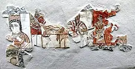Fragmento de una pintura mural que muestra un rey kindita, siglo I CE, de Qaryat al-Faw, distrito residencial (Departamento de Arqueología, Universidad Rey Saúd, Riad).
