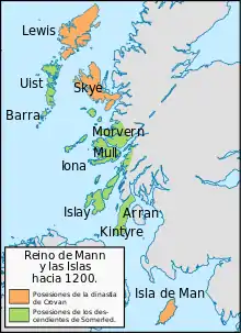 A la muerte de Somerled en 1164, sus tres hijos heredan territorios como reyes en la región: