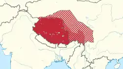 ![]() El Tíbet y sus reclamaciones territoriales en la década de 1940. | ||||||||||||||||||||||||||||||||||