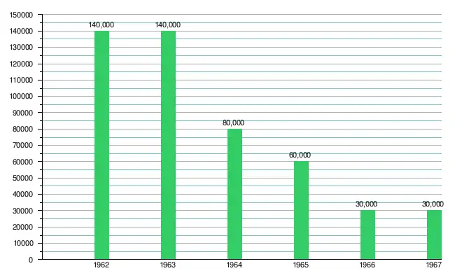 Cantidad de Gas natural exportado desde Bolivia a Argentina en metros cúbicos por día (1962-1967) |