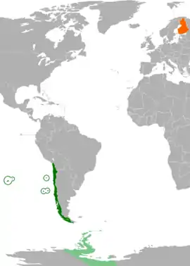 Las relaciones entre Chile y Finlandia son las relaciones exteriores entre Chile y Finlandia. Chile reconoció la independencia de Finlandia el 17 de junio de 1919. Las relaciones diplomáticas entre ellos se establecieron en 1931 y se han mantenido continuamente, a pesar de las presiones ocasionales para descontinuarlos.[1] Ambos países mantienen embajadores residentes en ambas capitales .[1]
