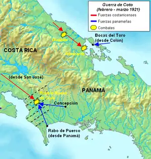 Desde la separación de Panamá de Colombia en 1903, Costa Rica y Panamá solo han roto relaciones durante la breve Guerra de Coto en 1921 que tuvo resultados ambivalentes para los dos bandos. Durante el conflicto, las fuerzas costarricenses lograron recuperar brevemente Bocas del Toro, y de la misma forma, con la ayuda de los ferrocarriles de la United Fruit Company, los costarricenses lograron ocupar las zonas de Guabito, Almirante y Changuinola. Pese a que Panamá ganó la guerra en el aspecto bélico, el conflicto finalizó con un armisticio entre ambas naciones, al los Estados Unidos exigir el cese del conflicto de una manera inesperada. Panamá debió ceder el territorio de Coto y el margen oeste de la cuenca del río Sixaola a Costa Rica, mientras que Costa Rica acordó devolver la provincia de Bocas del Toro a Panamá.