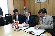 En el transcurso de la mejora de las relaciones diplomáticas con la Administración de Bush, la India aceptó permitir una estrecha vigilancia internacional del desarrollo de sus armas nucleares, aunque se negó a renunciar a su arsenal nuclear actual.[49] En 2004, los EE.UU. decidieron otorgar el estatus de Aliado importante extra-OTAN (MNNA) a Pakistán. Estados Unidos extendió la relación de trabajo estratégica de MNNA a India, pero la oferta fue rechazada.[50][51]