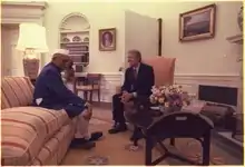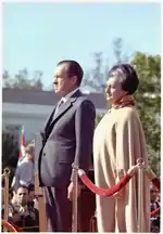 Tras el asesinato de Kennedy en 1963, las relaciones indo-estadounidenses se deterioraron gradualmente. Mientras el sucesor de Kennedy Lyndon Johnson buscaba mantener relaciones con la India para contrarrestar a la China comunista,[39] también buscó fortalecer los lazos con Pakistán con la esperanza de aliviar las tensiones con China y debilitar la creciente concentración militar de la India también.[39] Las relaciones luego alcanzaron un mínimo histórico bajo la administración de Nixon a principios de los años setenta. Richard Nixon se alejó de la postura neutral que sus predecesores habían tomado hacia las hostilidades indo-paquistaníes. Estableció una relación muy estrecha con Pakistán, ayudándola militar y económicamente, ya que India, ahora bajo el liderazgo de Indira Gandhi, fue vista como inclinada hacia la Unión Soviética. Consideraba a Pakistán como un aliado muy importante para contrarrestar la influencia soviética en el subcontinente indio y establecer vínculos con China, con quien Pakistán era muy cercano.[40] La relación personal helada entre Nixon e Indira contribuyó aún más a la mala relación entre las dos naciones.[41] Durante la Guerra indo-pakistaní de 1971, los Estados Unidos apoyaron abiertamente a Pakistán e incluso desplegaron su portaaviones USS Enterprise (CVN-65) hacia el Bahía de Bengala, que fue vista como una demostración de fuerza por parte de los EE. UU. en apoyo de las asediadas fuerzas Pakistán Occidental. Más tarde, en 1974, India realizó su primera prueba nuclear, Smiling Buddha, a la que Estados Unidos se opuso, sin embargo, también concluyó que la prueba no violaba ningún acuerdo y procedió a un envío en junio de 1974 de uranio enriquecido para el reactor Tarapur.[42][43]