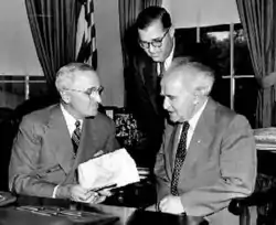 La decisión era todavía controvertida, con un importante desacuerdo entre Truman y el Departamento de Estado acerca de cómo manejar la situación. Truman era un partidario del movimiento sionista, mientras que el Secretario de Estado George Marshall temía que el apoyo estadounidense a un Estado judía perjudicaría las relaciones con el mundo musulmán, limitando el acceso al petróleo de Oriente Medio y desestabilizando la región. El 12 de mayo de 1948, en la Oficina Oval, Marshall dijo a Truman que votaría contra él en las próximas elecciones si Estados Unidos reconocía a Israel como Estado.[10] Al final, Truman reconoció al Estado de Israel poco después de su declaración unilateral de independencia. El reconocimiento de iure tuvo lugar el 31 de enero de 1949.