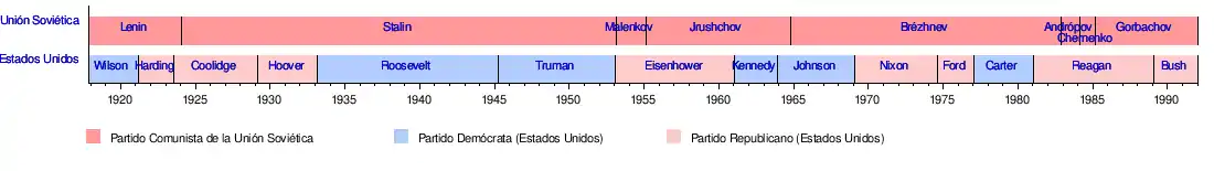 Dirigentes de la Unión soviética y los Estados Unidos desde 1917 hasta 1991.